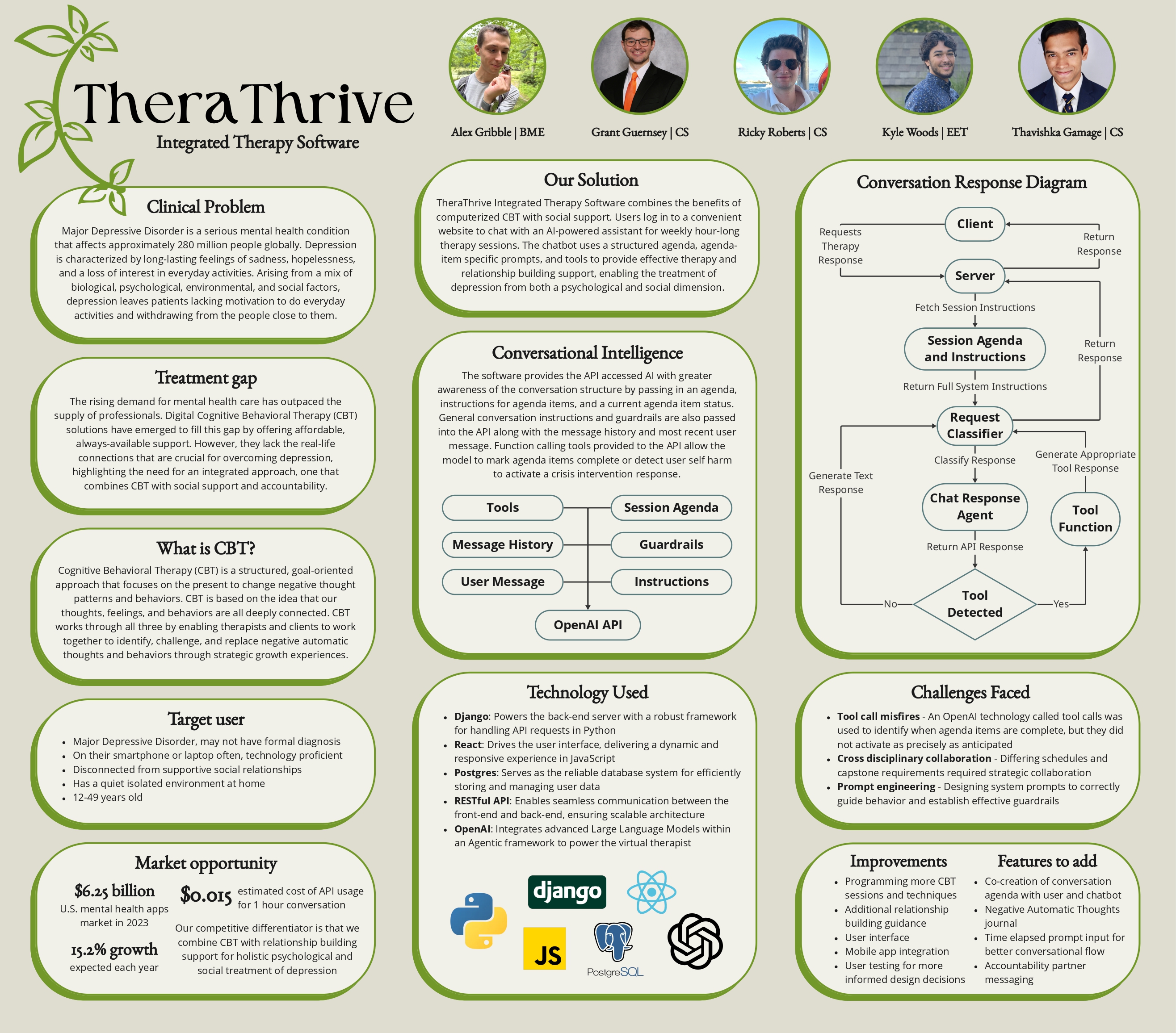 Full-stack AI chatbot that delivers guided CBT sessions to make mental health support more accessible online.